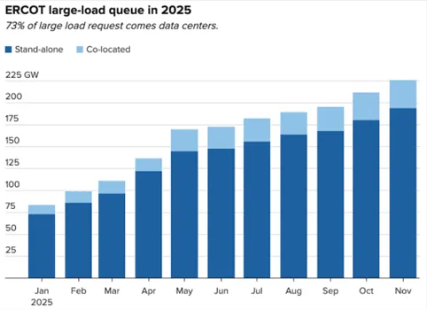 If all of the projects in queue were actually built, they would be equivalent to the average annual power consumption of nearly 154 million homes in Texas. But the Lone Star state only has a population of about 30 million people.